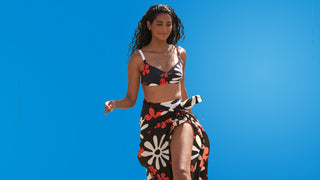 Der Pareo verleiht als Jupe oder als Kleid gewickelt einen ganz eigenen Look. Die seidenähnlich, leichte Viscose ist angenehm kühl auf der Haut, fällt fliessend und ist mit dem eigens entwickelten floralen Print ein echter Hinguker.